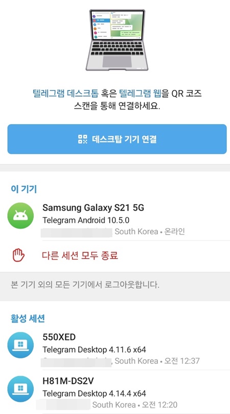 텔레그램을 사용하다보면 스마트폰뿐만 아니라